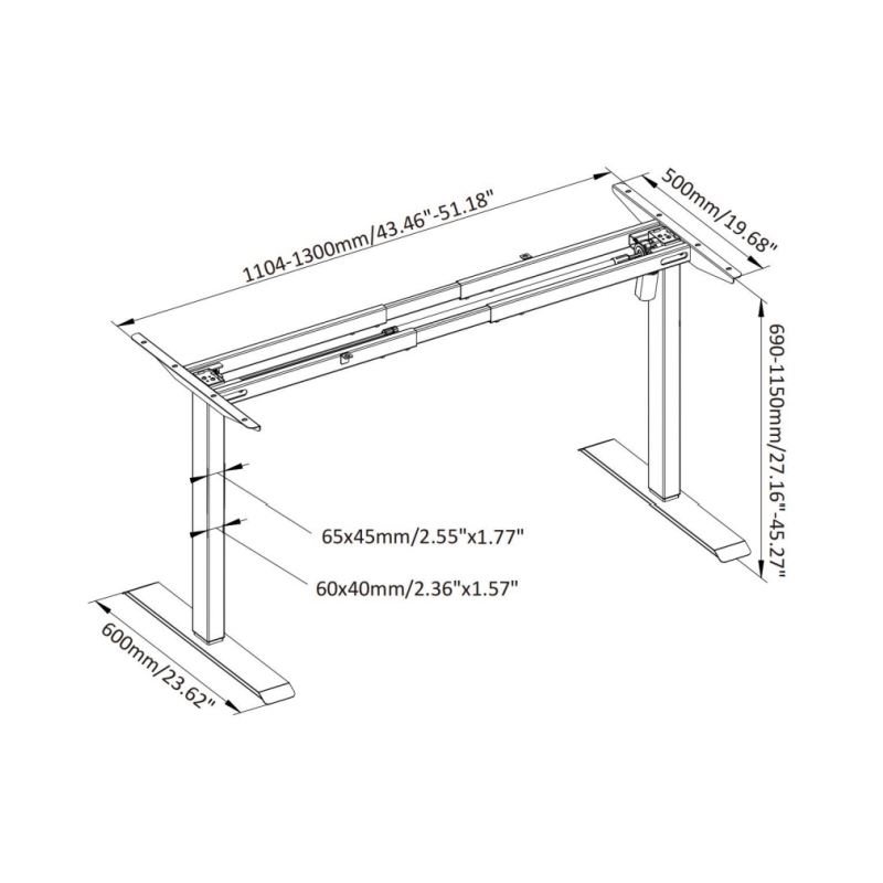 Anti-collision Tabletop Size: Width 600-700mm Length 1200-1700mm Motor Quantity:Dual Motor Motor Type:Brushed Motor Column Segments:Two Stage Column