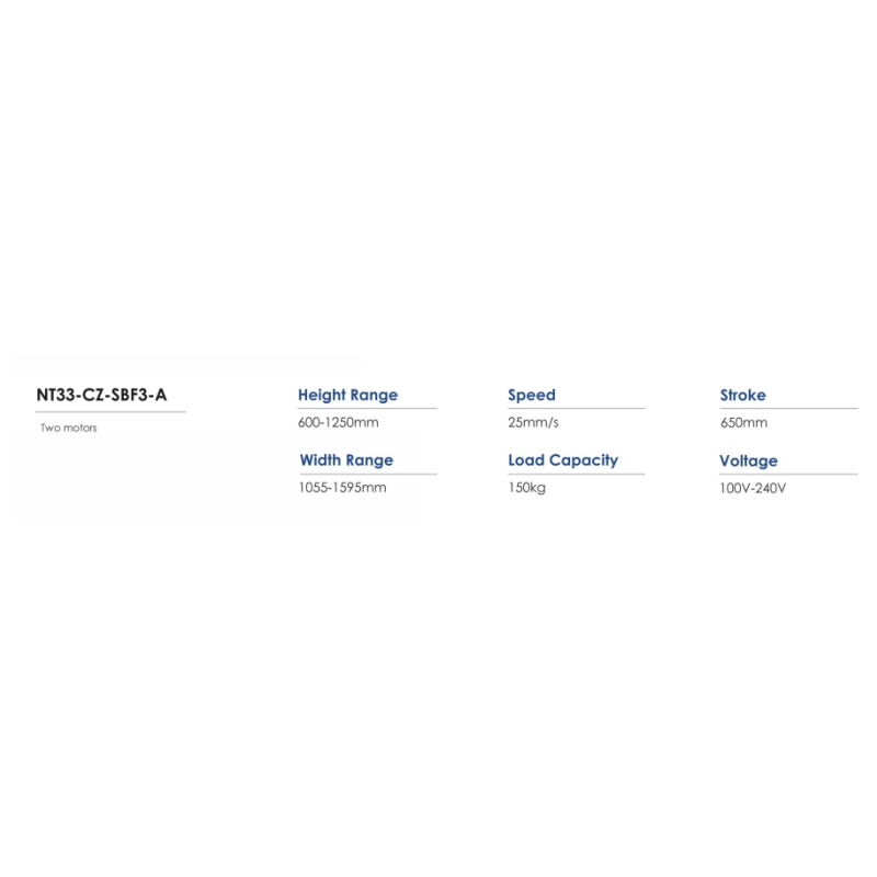 Anti-collision Tabletop Size: Width 600-800mm Length 1200-1800mm Motor Quantity:Dual Motor Motor Type:Brushed Motor Column Direction:Reversed Column Column Segments:Two Stage Column