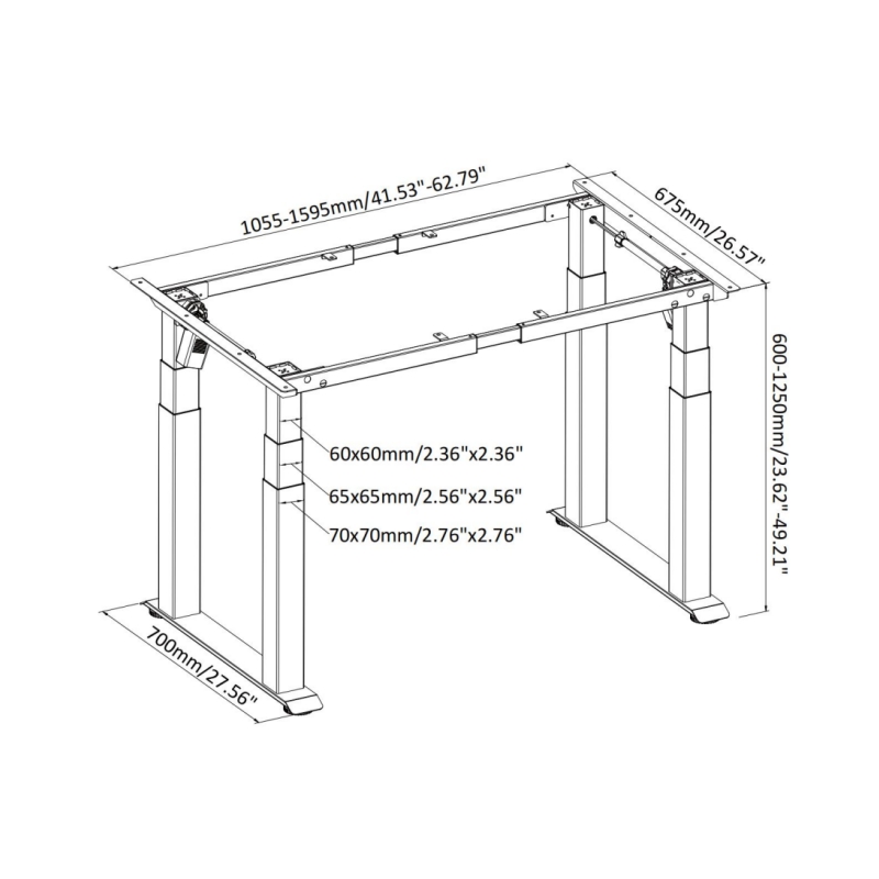 Anti-collision Tabletop Size: Width 600-700mm Length 1600mm Motor Quantity:Dual Motor Motor Type:Brushed Motor Column Direction:Reversed Column Column Segments:Two Stage Column